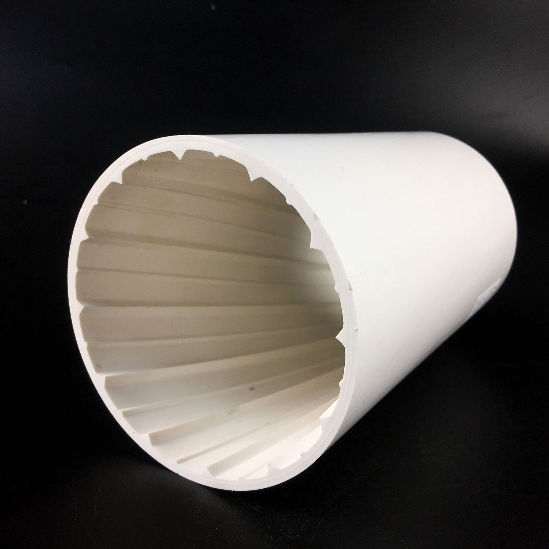 5、增加管材强度:由于管内有畅通的空气柱,降低了管内压力的压力波动,提高了管道使用安全系数,管内壁六条三角形螺旋主筋具有显著的加强作用,可有效降低管道受外力冲击而导致的破裂现象。