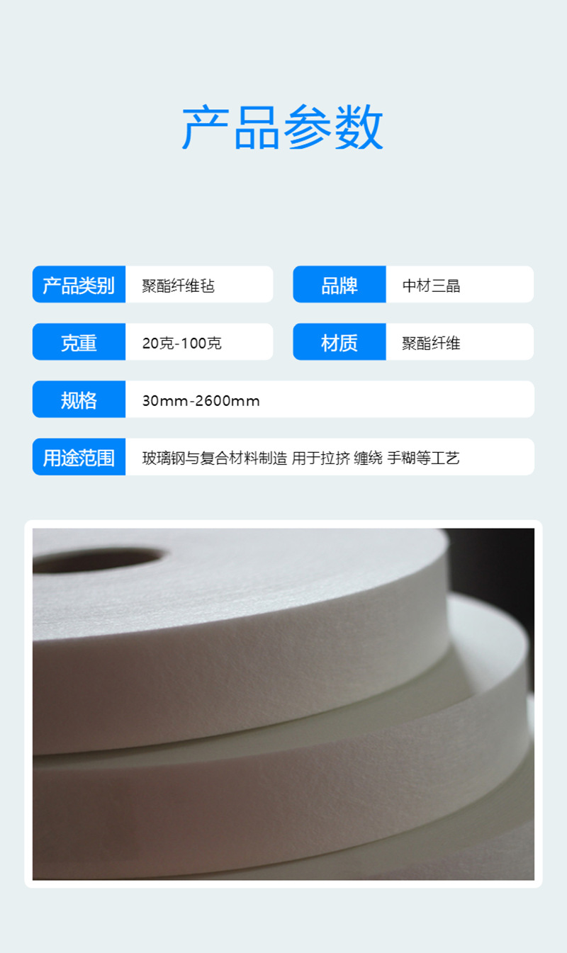 白色聚酯纤维表面毡 玻璃钢拉挤聚酯纤维表面毡