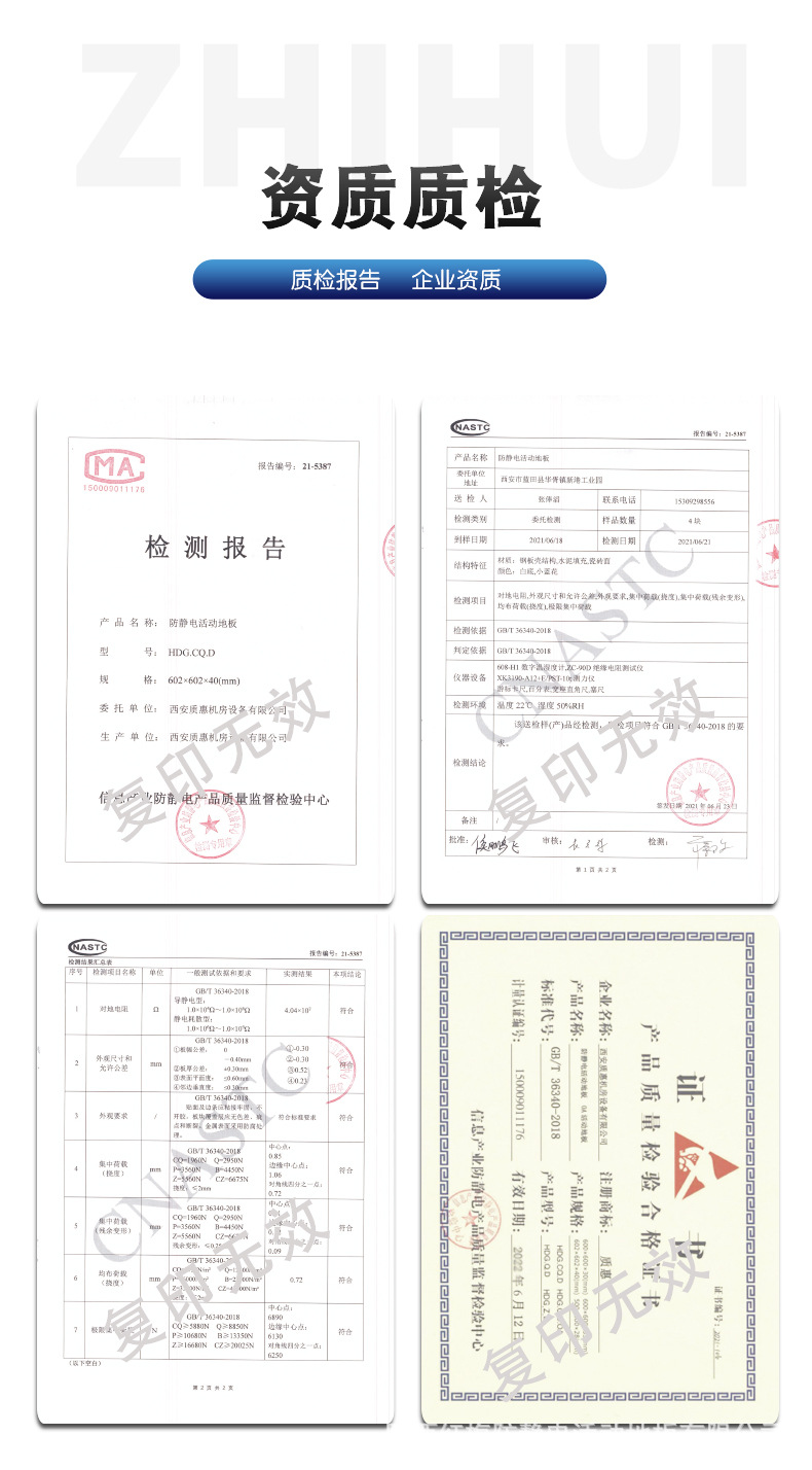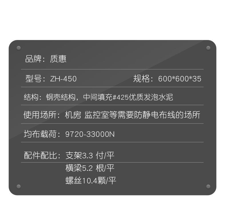 质惠ZH-450A 防静电地板 1.2HPL全钢机房架空活动地板 600*600*35