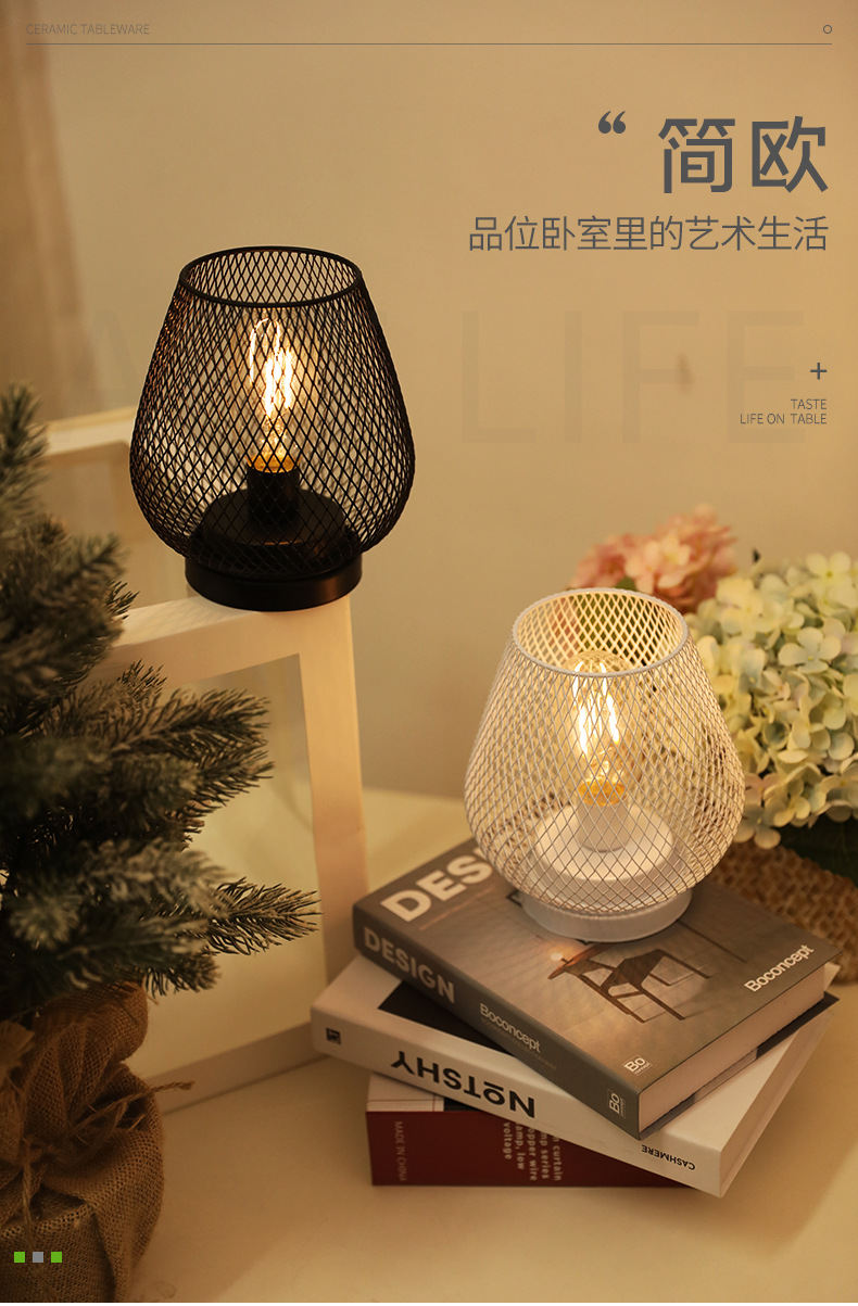 圣诞铁艺丝网LED台灯客厅书房布置小夜灯简约温馨卧室学生照明灯